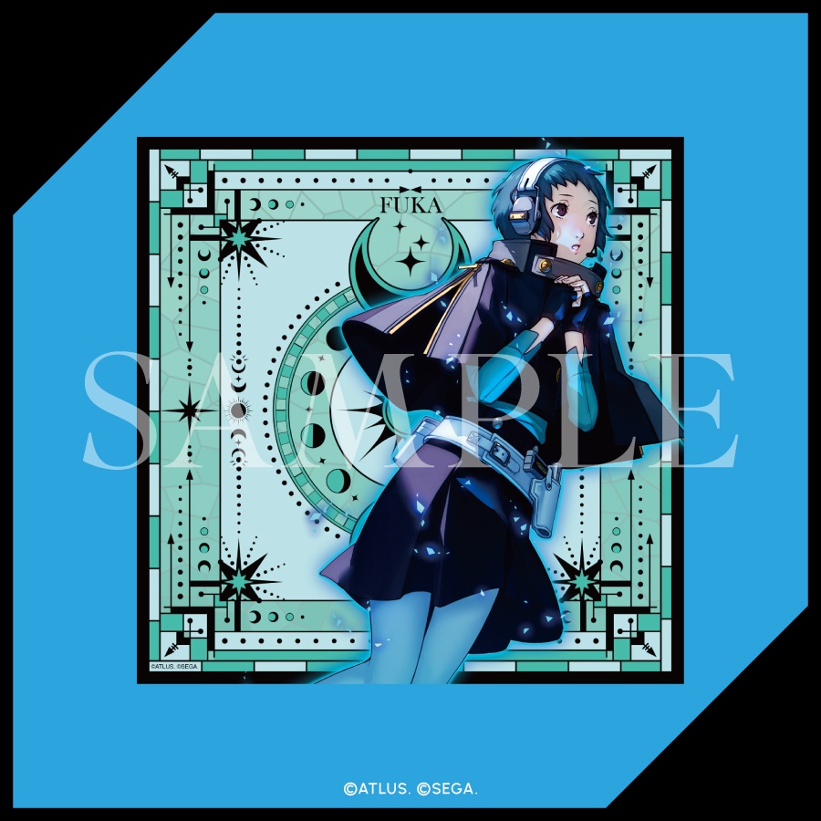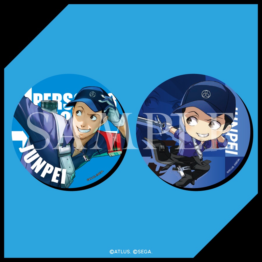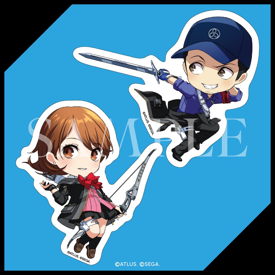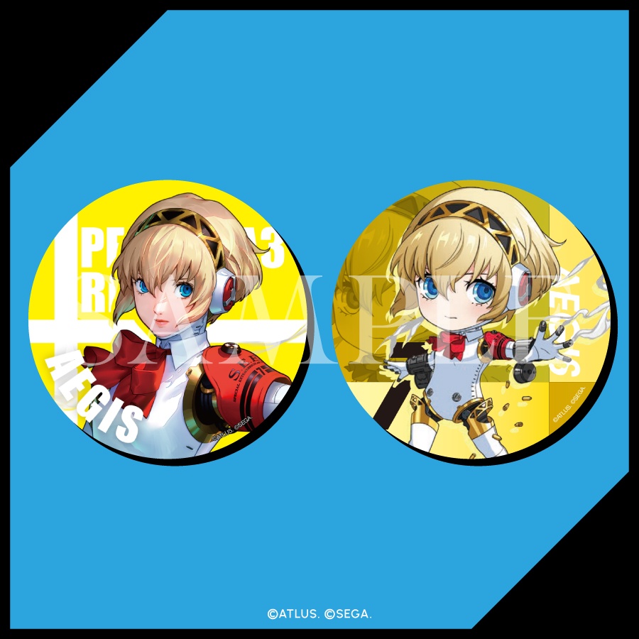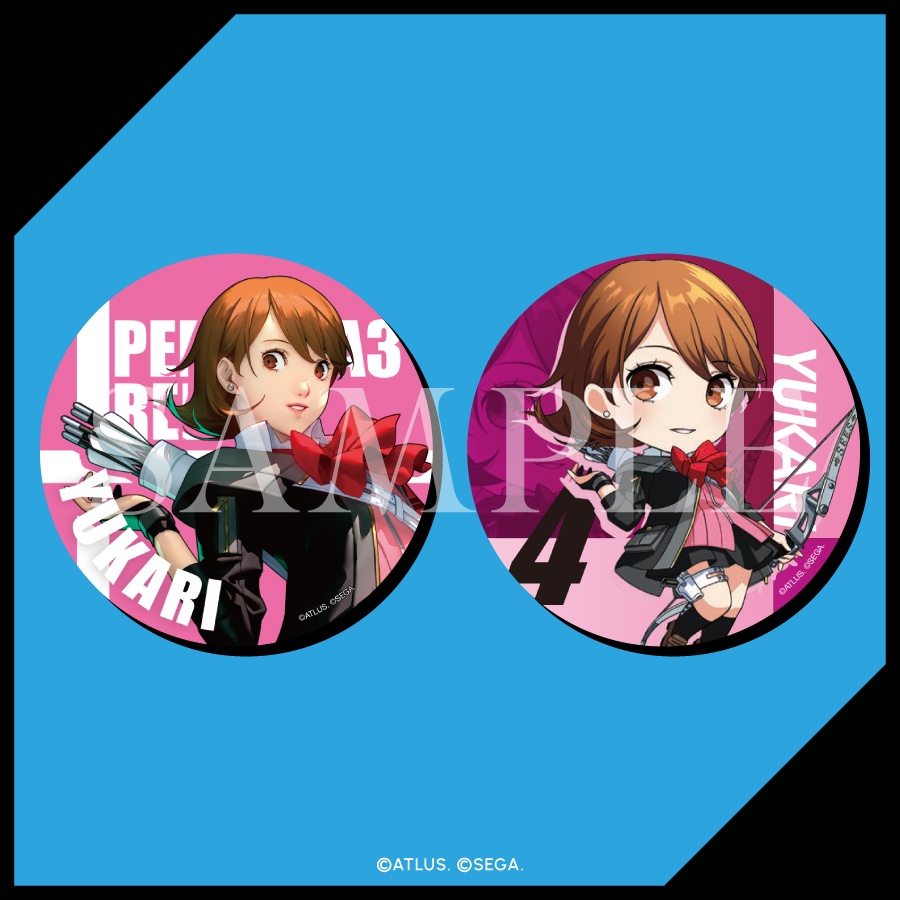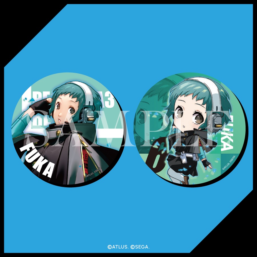 Holographic pinback buttons featuring Nendoroid illustrations of the S.E.E.S members.